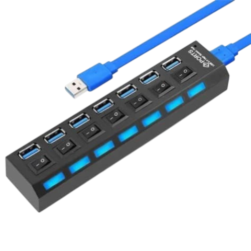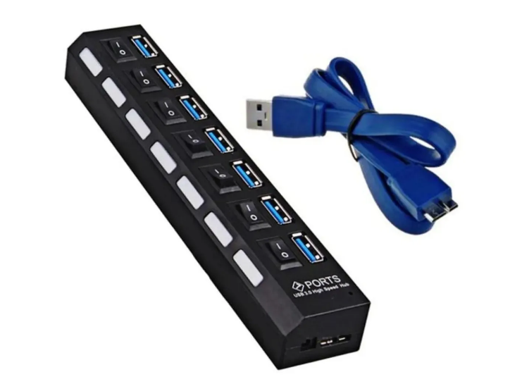 Optimiza la conectividad de tu computador o laptop con este multipuertos USB 3.0, diseñado para ofrecer transferencia de datos de alta velocidad y control total sobre cada dispositivo conectado. Incorpora interruptores independientes con indicador LED en cada puerto, permitiéndote encender o apagar dispositivos sin necesidad de desconectarlos.
